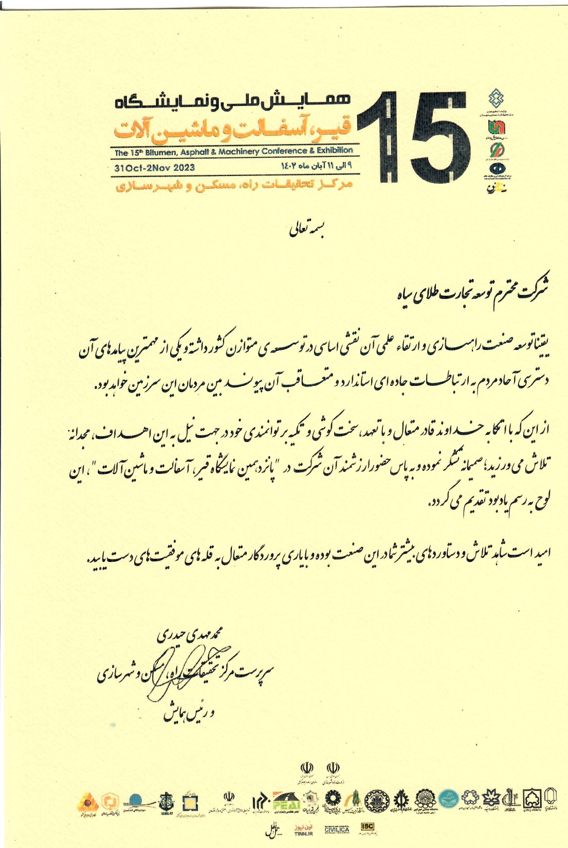 • اخذ گواهینامه فنی درجه A از مرکز تحقیقات راه، مسکن و شهرسازی.